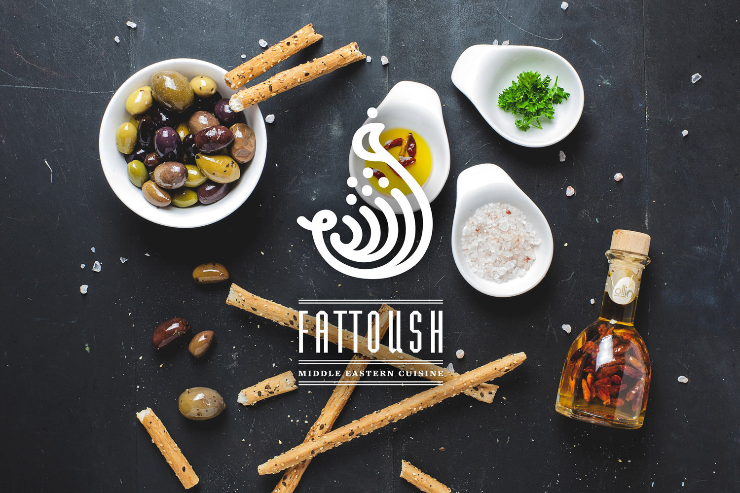 For this project, we updated the look to be one that exuded a contemporary flair to match the fresh take the head chef took on his dishes. We created a mark that combined the Arabic calligraphy for "Fattoush," the signature dish, with the icon of a fig, which is historically considered to be the true mana from heaven.